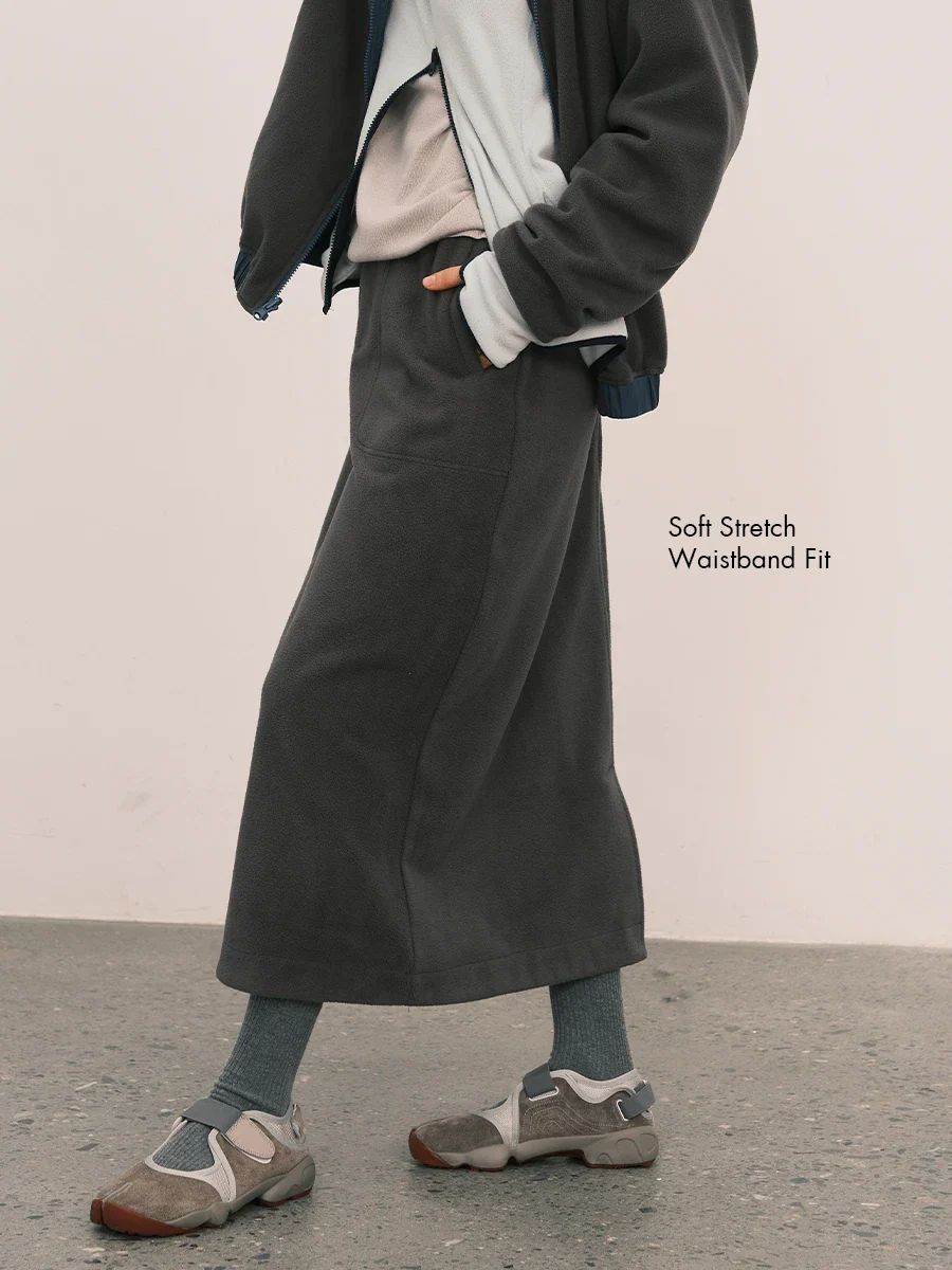 -70%Colorblock Fleece A-Line Midi Skirtā