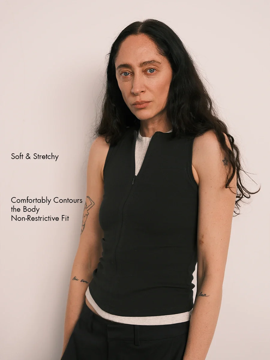 Daamgirl Contouring Ribbed Zip-Up Fitted Tank