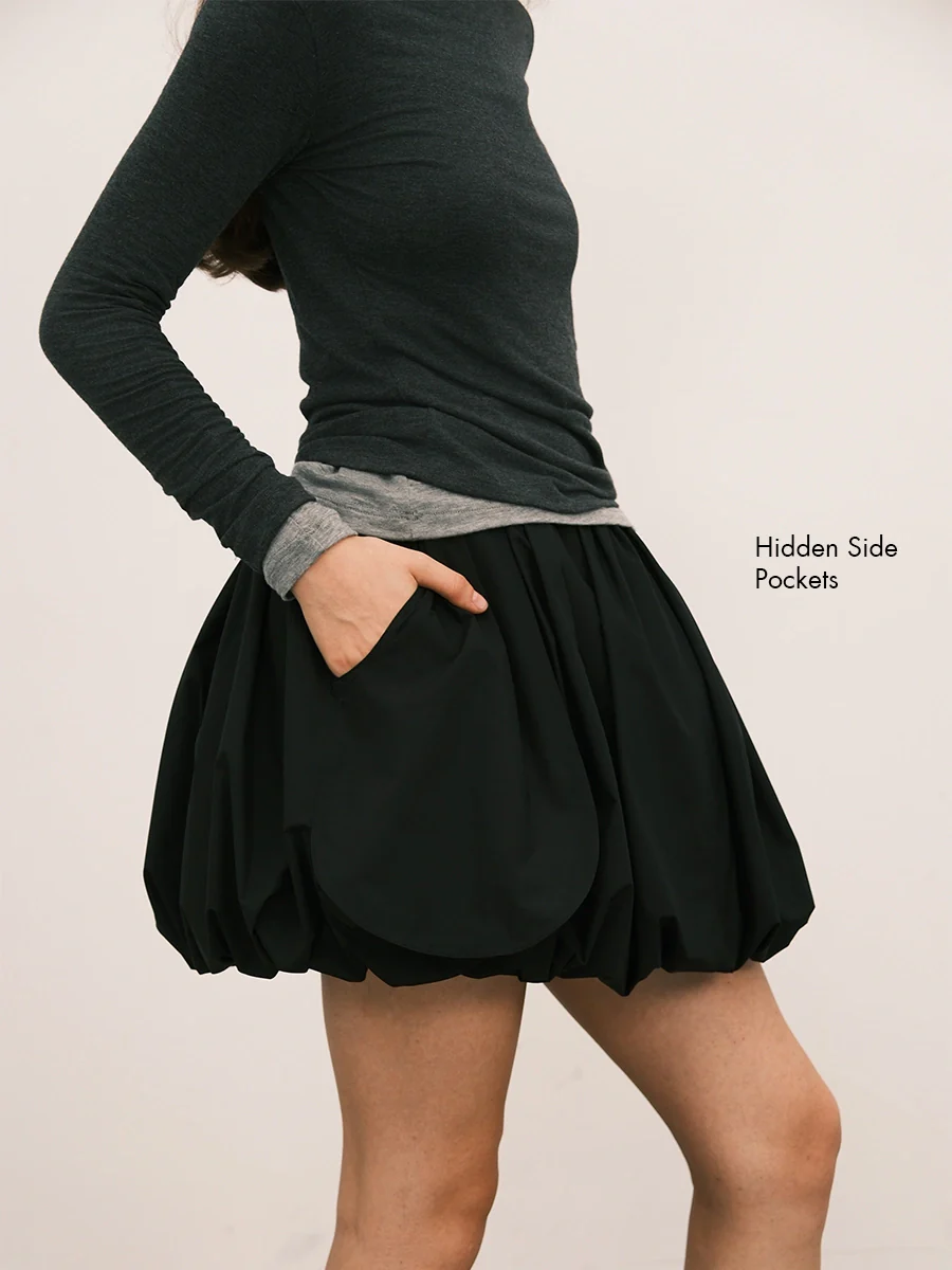 High-Waist Puffer Bubble Mini Skirt with Pockets