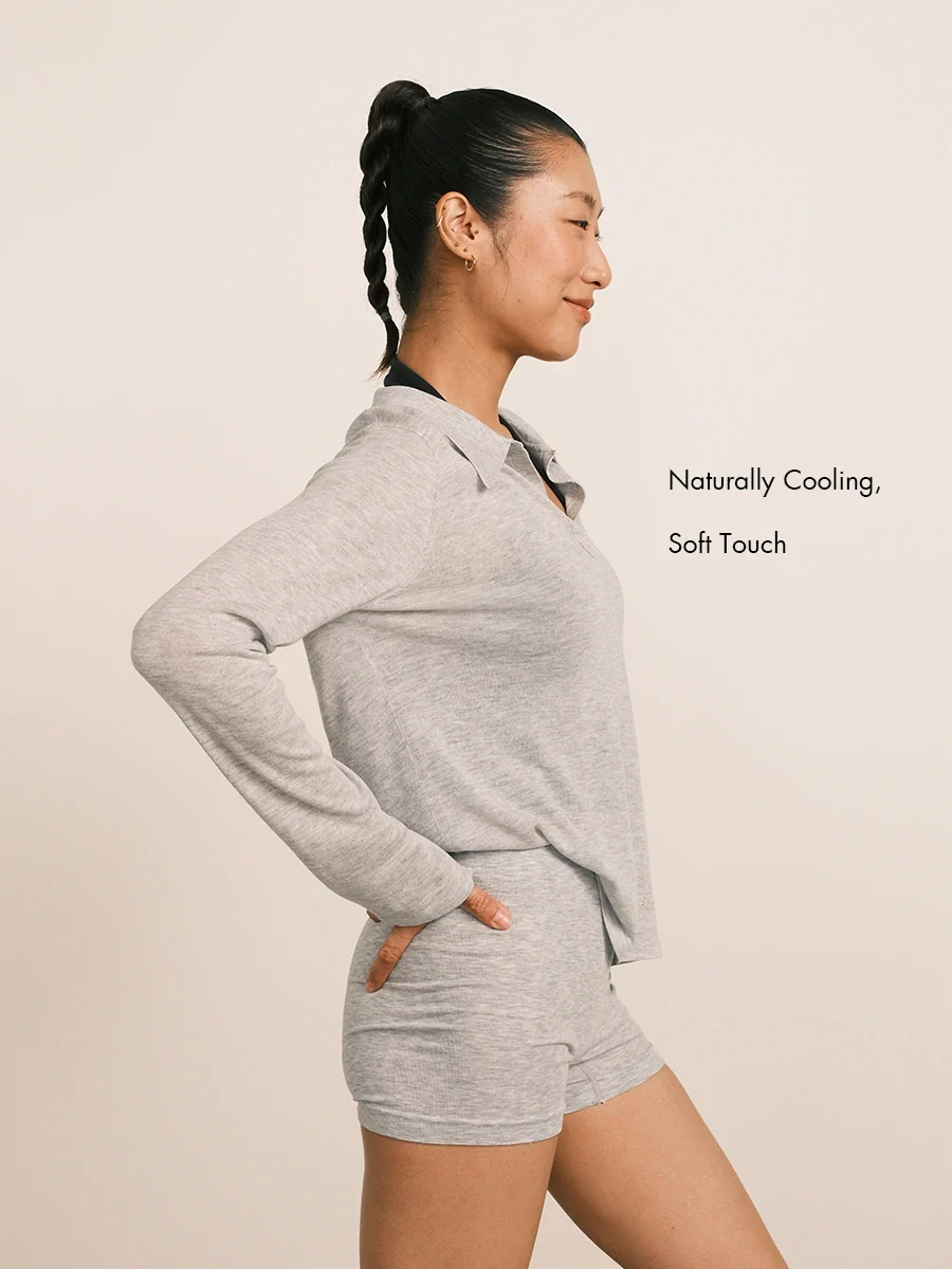Modern Allure Linen-Tencel Sheer Knit Polo Top
