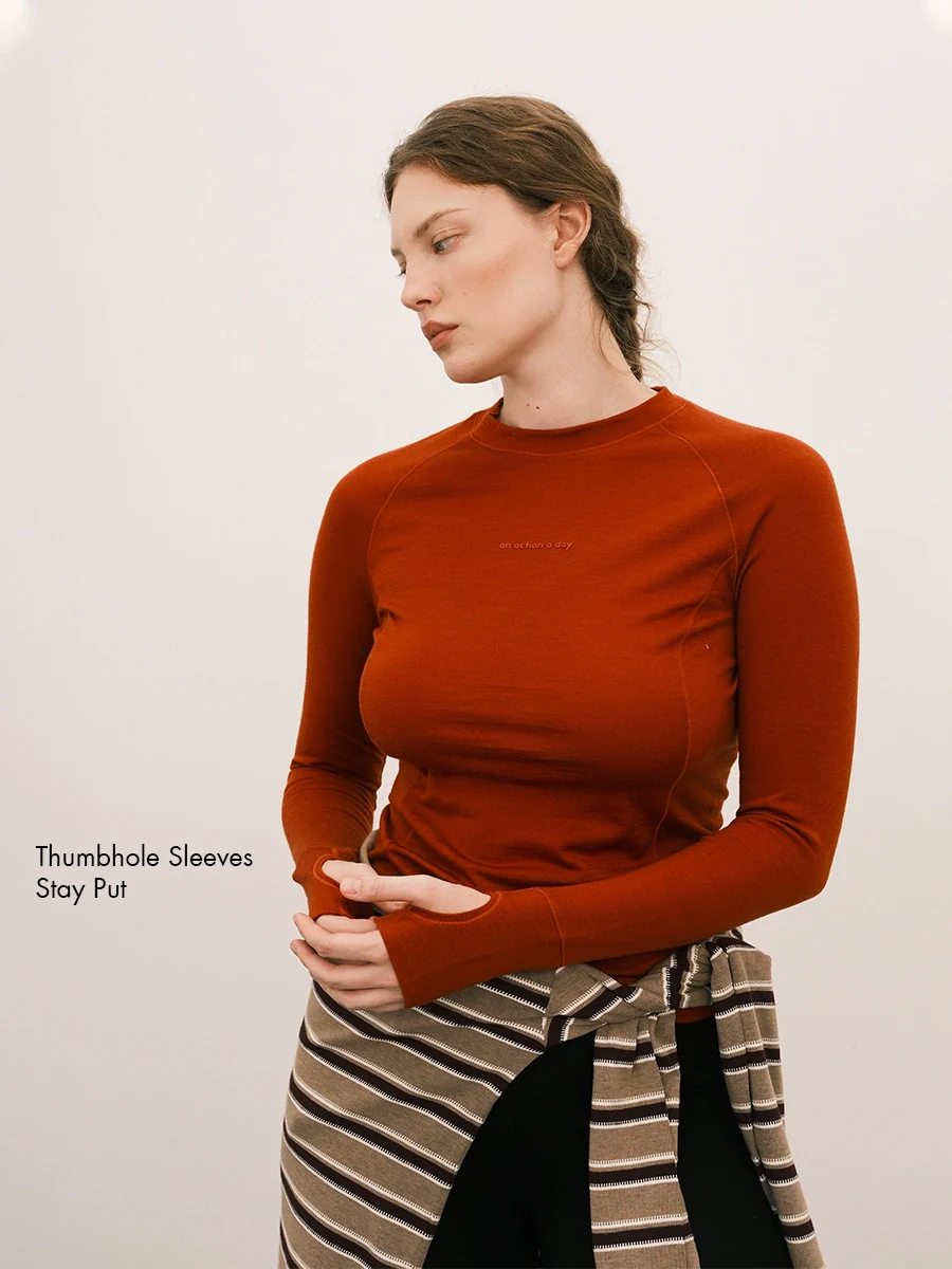 Pure Wool Crewneck Sculpting Thermal Thumbhole Top