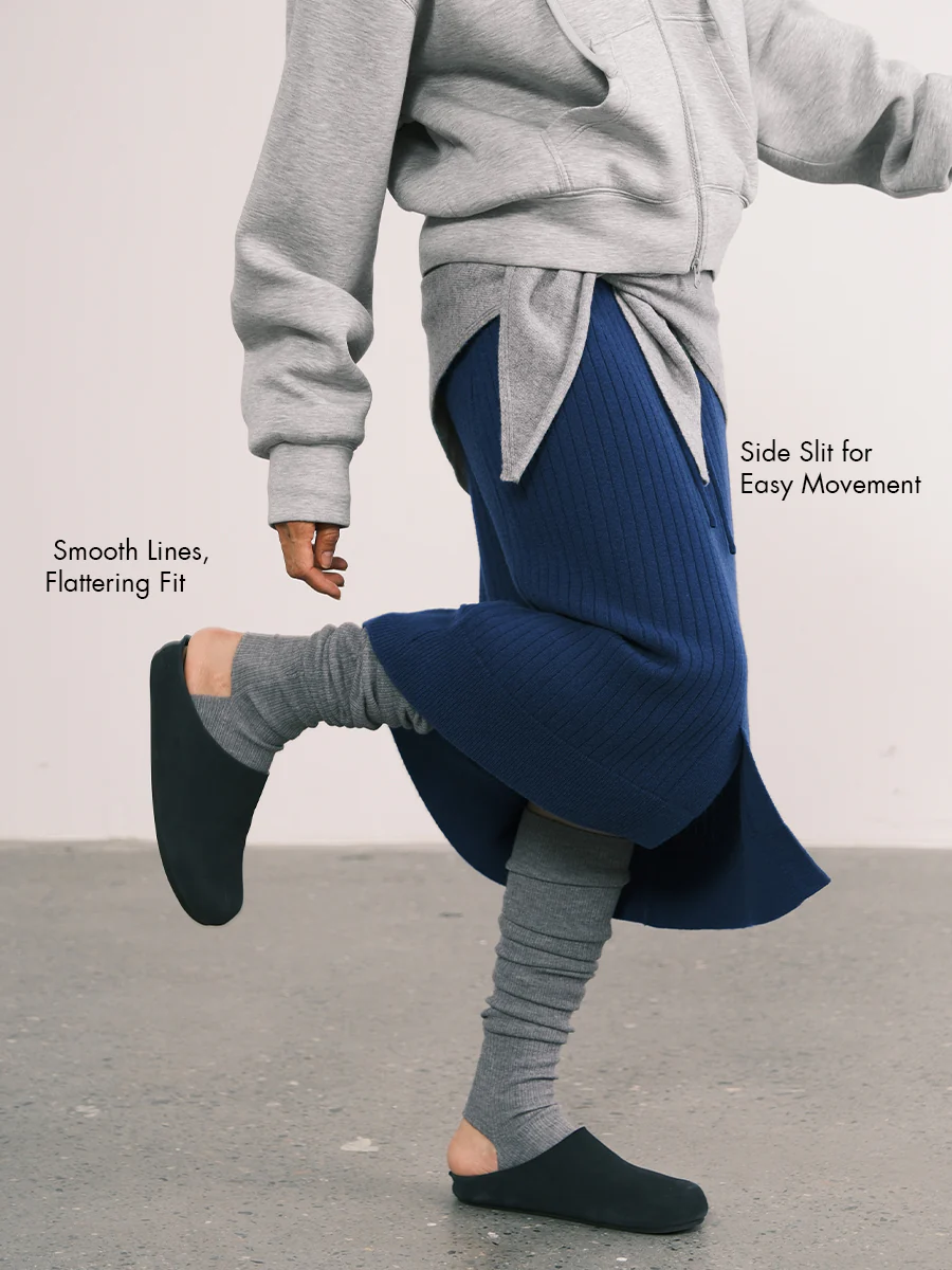 -70%Pure Wool Ribbed A-Line Midi Skirt—