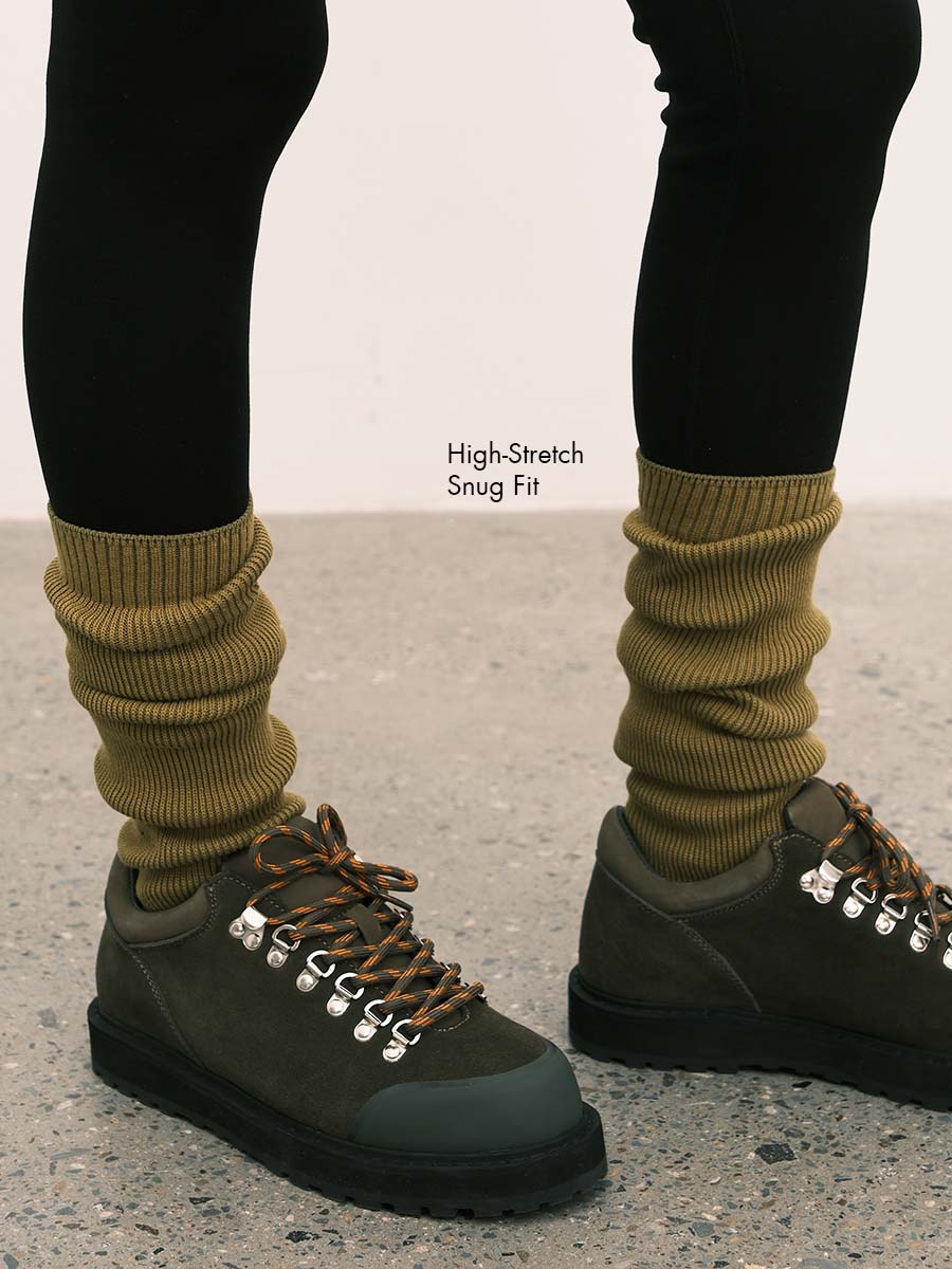 Ribbed Cotton-Blend Stretchy Stirrup Leg Warmers