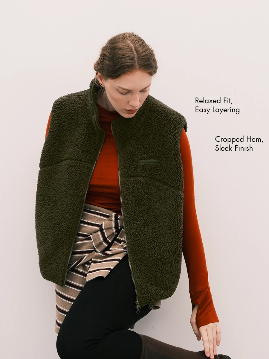 Sherpa Teddy Fleece Stand Collar Zip Vest