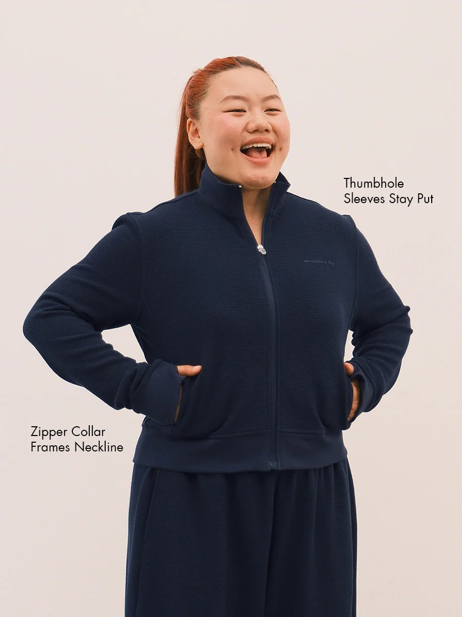 Waffle Short Zip-Up Mock Neck Sweatshirt